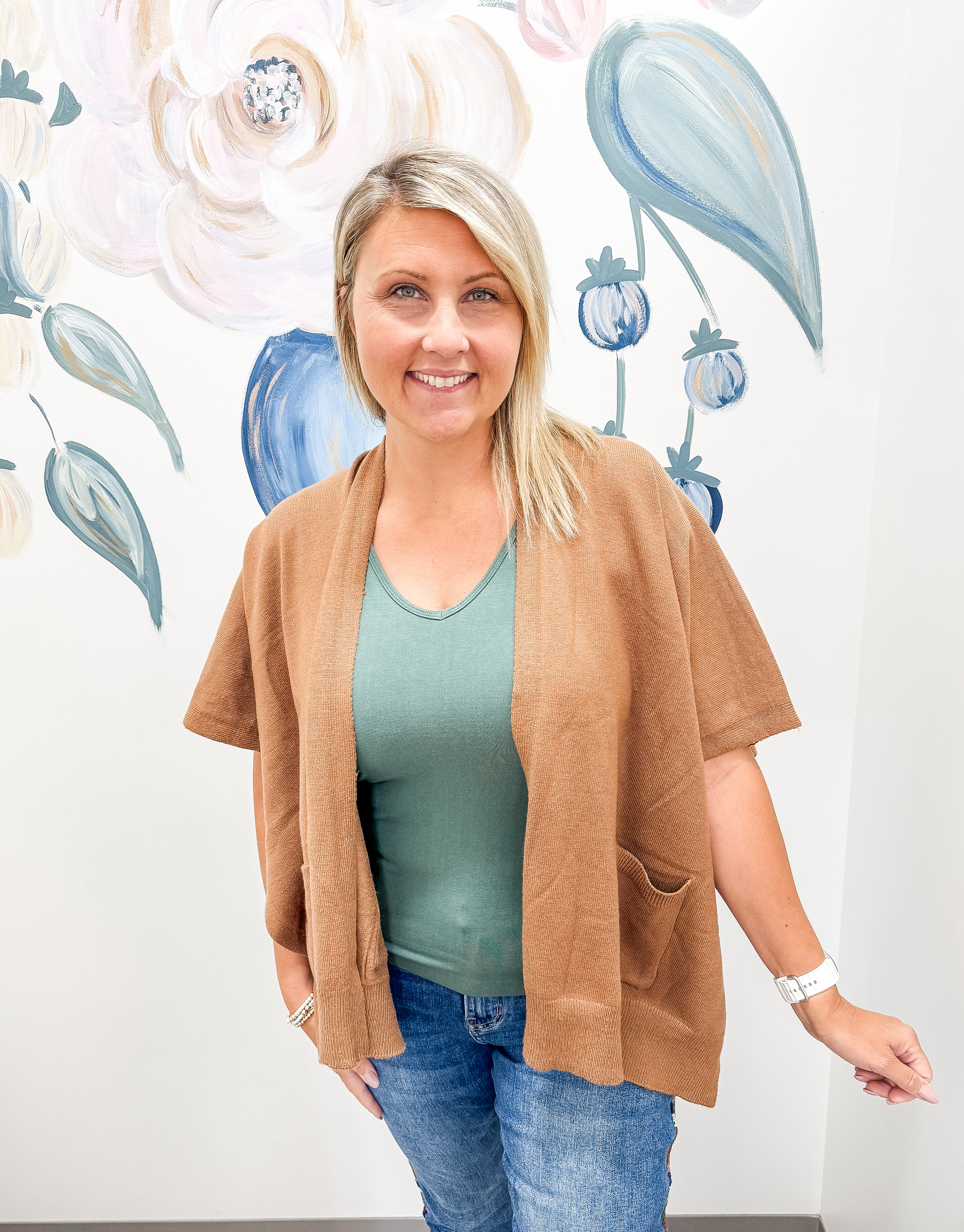 Elevate any outfit with this Alani Lightweight Cardigan. It features a one-size cardigan fit made of soft knit fabric. Ribbed trim on the sleeves and pockets. Loose fit. Drapes easily over tops and dresses too! Love it!