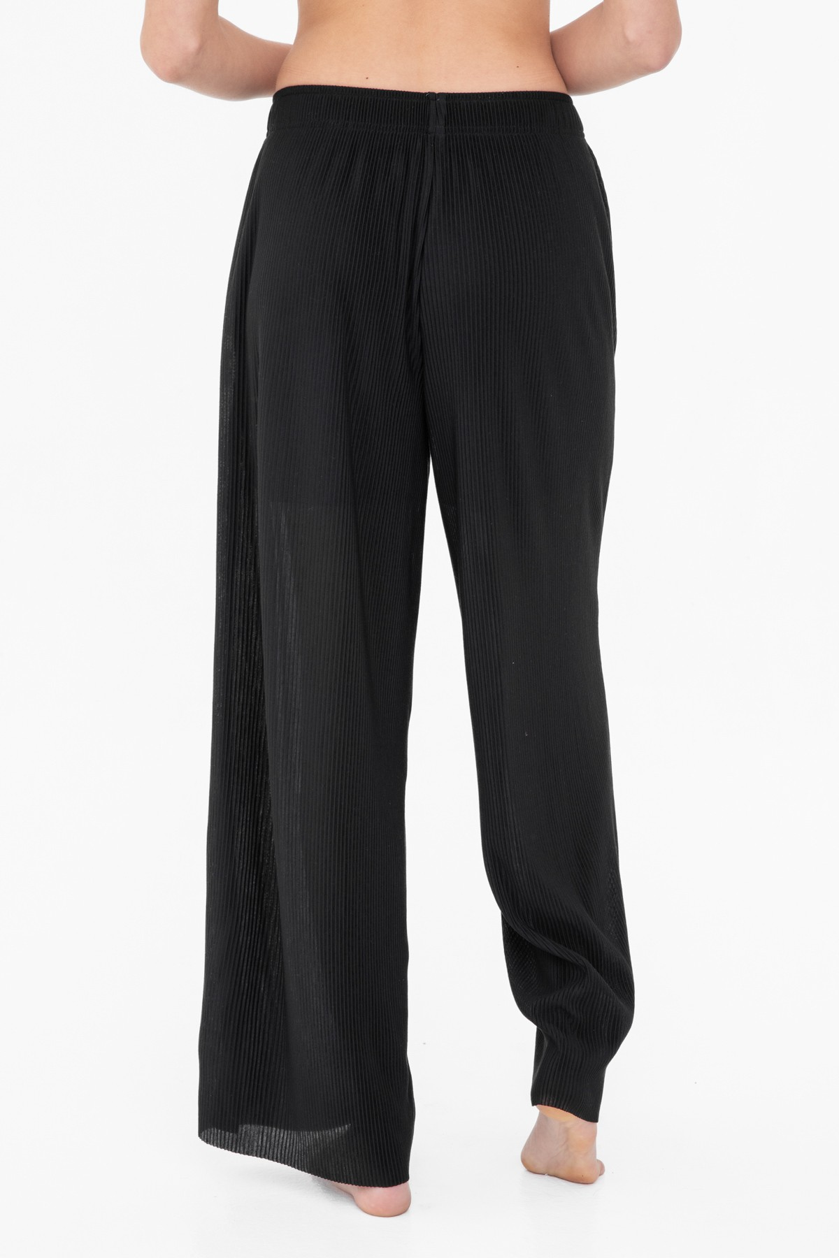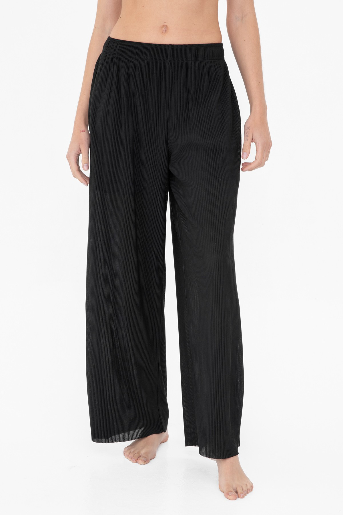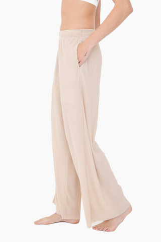 These luxuriously lightweight pants are made in a micro pleated jersey. The flattering wide leg silhouette comes complete with a partial lining for ultimate comfort and easy breezy coverage.
