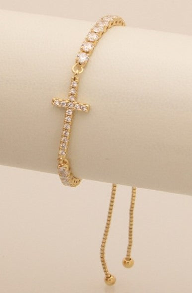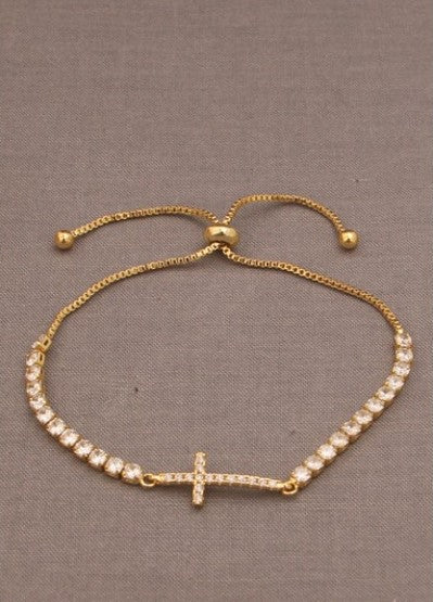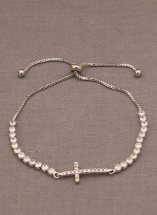 This adorable bracelet is the perfect way to add a stylish touch to your favorite outfits. We love the draw string clouser and cross design w/cubic zirconia, such a fun look - it's so stylish. Add this bracelet to any outfit this season for a finishing touch!