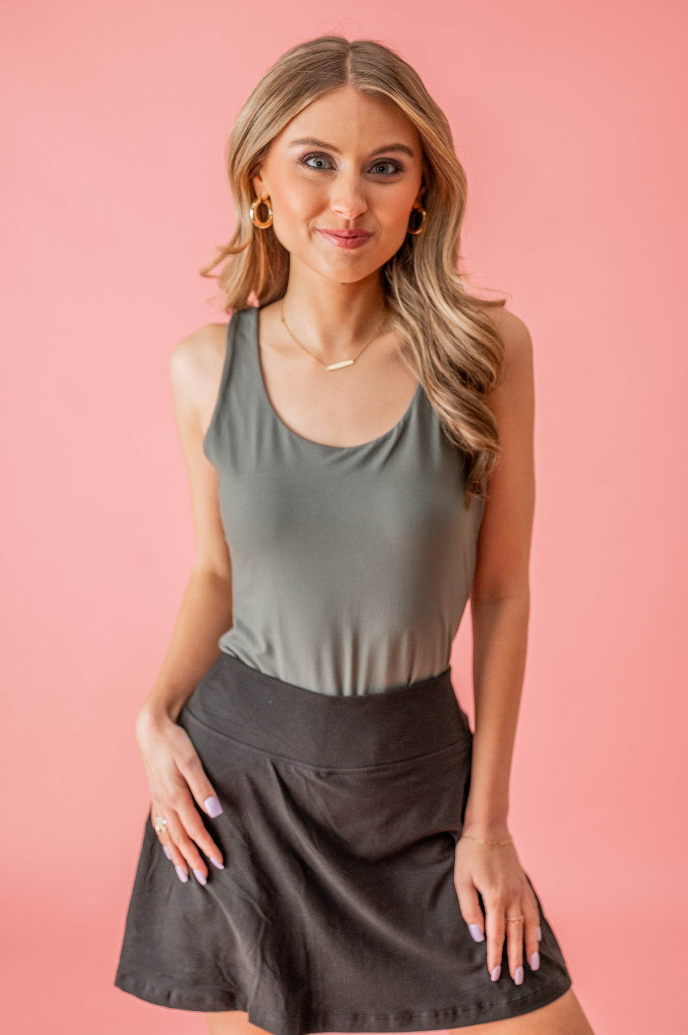 Hit the courts (or the streets) in style with our Buttery Soft Round Neck Tank Top. This essential tank is a perfect staple for under your outerwear and workout gear. Look good, feel good, and win the game! Go Out In Style Ladies!