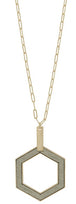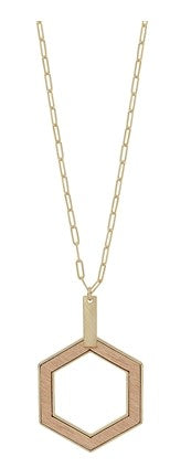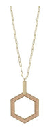 This necklace is such a fun accessory for a beach vacation! You can't go wrong with the fun wooden and gold hexagon design. This necklace will add a touch of style to your outfits and pair with the matching earrings. From little black dresses to tanks and jeans, you're sure to love these bold earrings all year long!