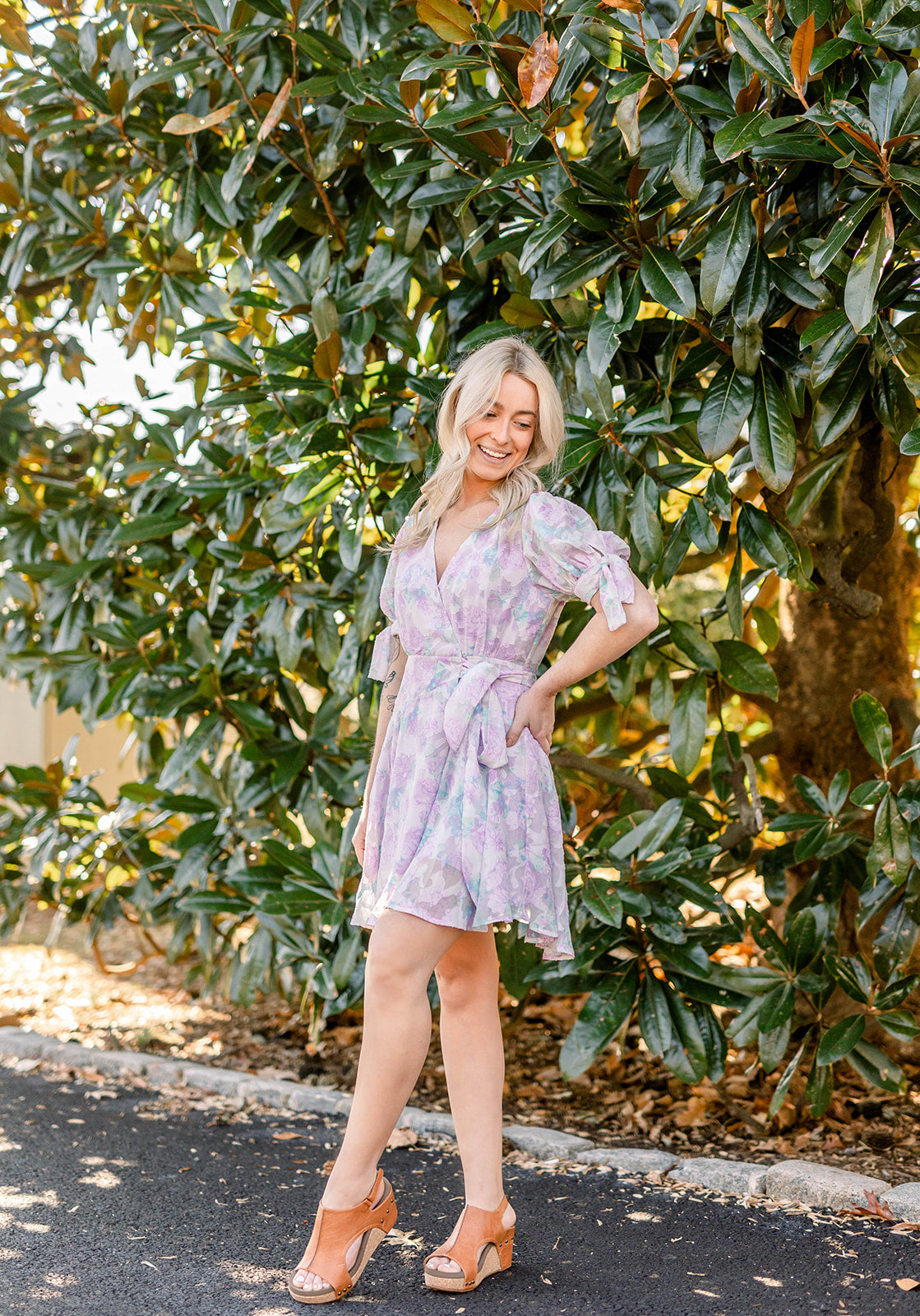 Easter is right around the corner and this dress is perfect for the occasion. With a mock wrap dress look and tie front, it's very flattering on any figure. We also can't get enough of the colors, they really get you excited for the warm weather!!