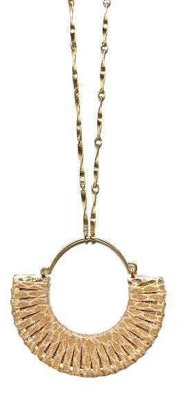 Gold chain leather wrapped hoop necklace.