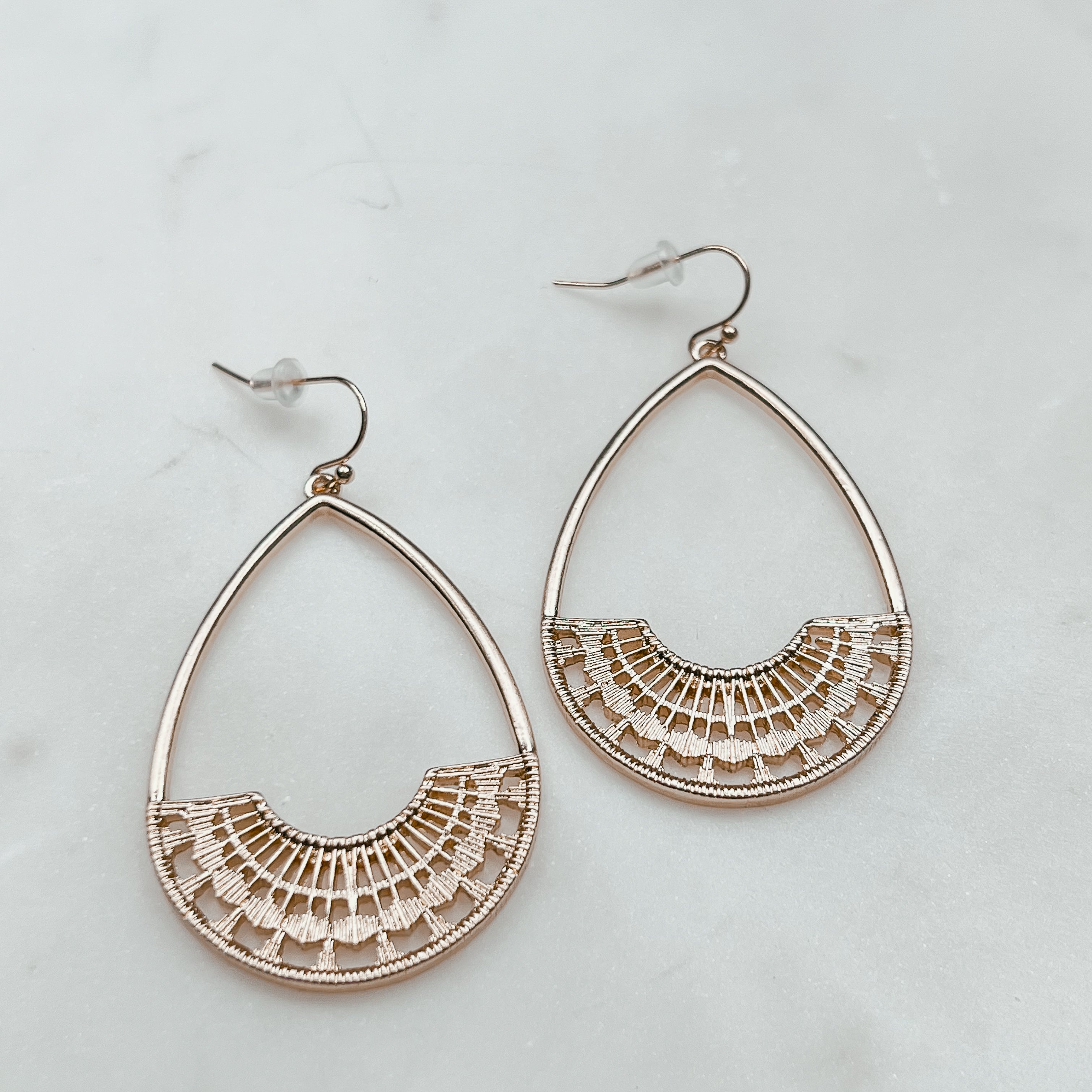 We adore these earrings they are so cute. You can't go wrong with the gold teardrop and fan accent they are perfect for anytime. It's such a fun way to add a pop of fun to any outfit.