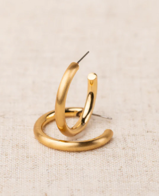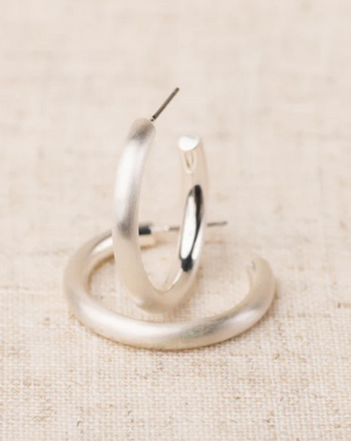 Say hello to the Cameron Hoops! These sleek and stylish earrings are designed to complement any outfit, from casual to chic. Available in timeless gold or silver and your choice of a brushed or shiny finish, they’re the perfect mix of classic and modern.
