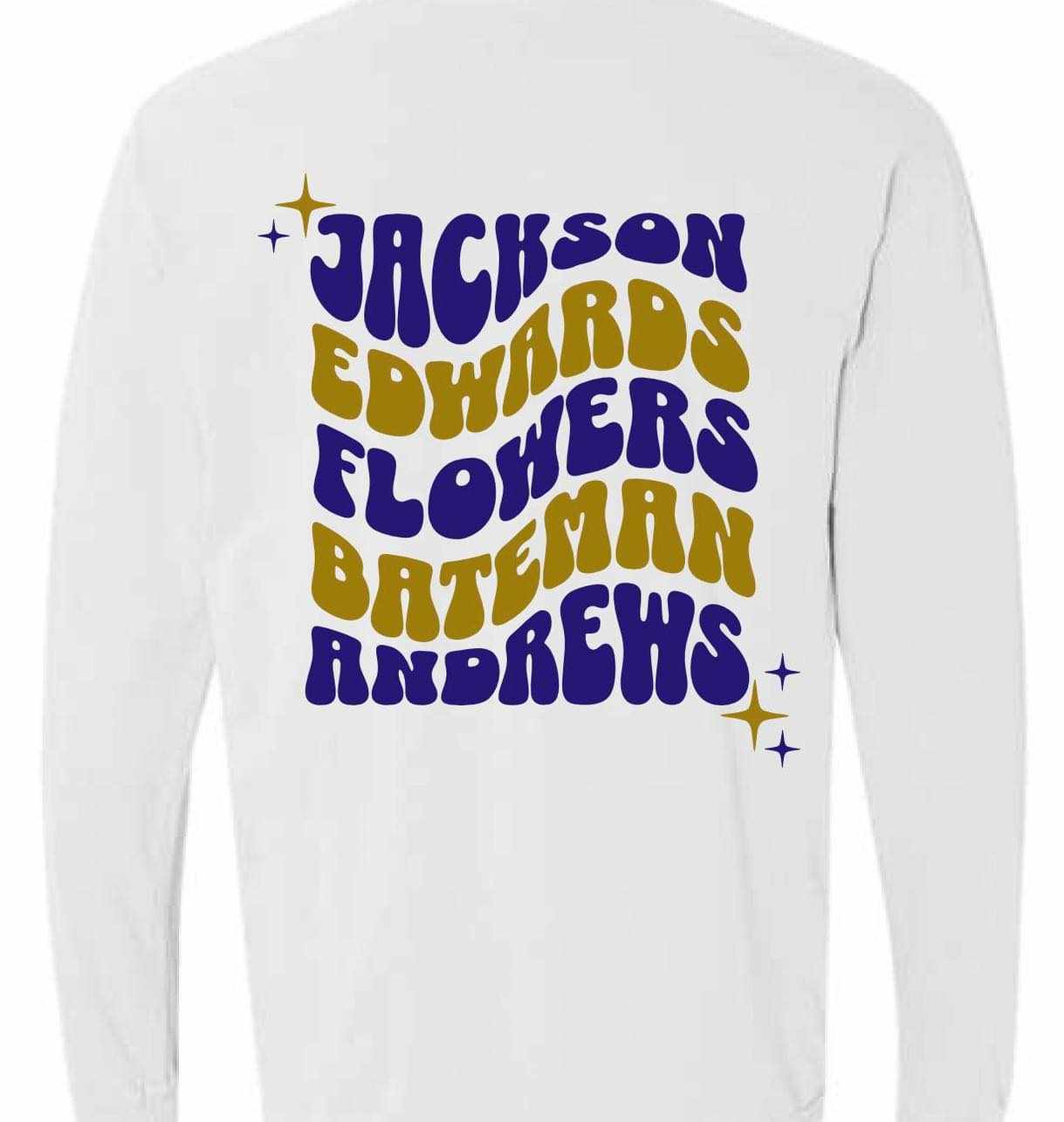 BACK: "Jackson Edwards Flowers Bateman Andrew" - Purple and Gold Print