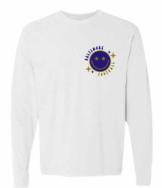 FRONT: "Baltimore Football" - Purple and Gold Smiley