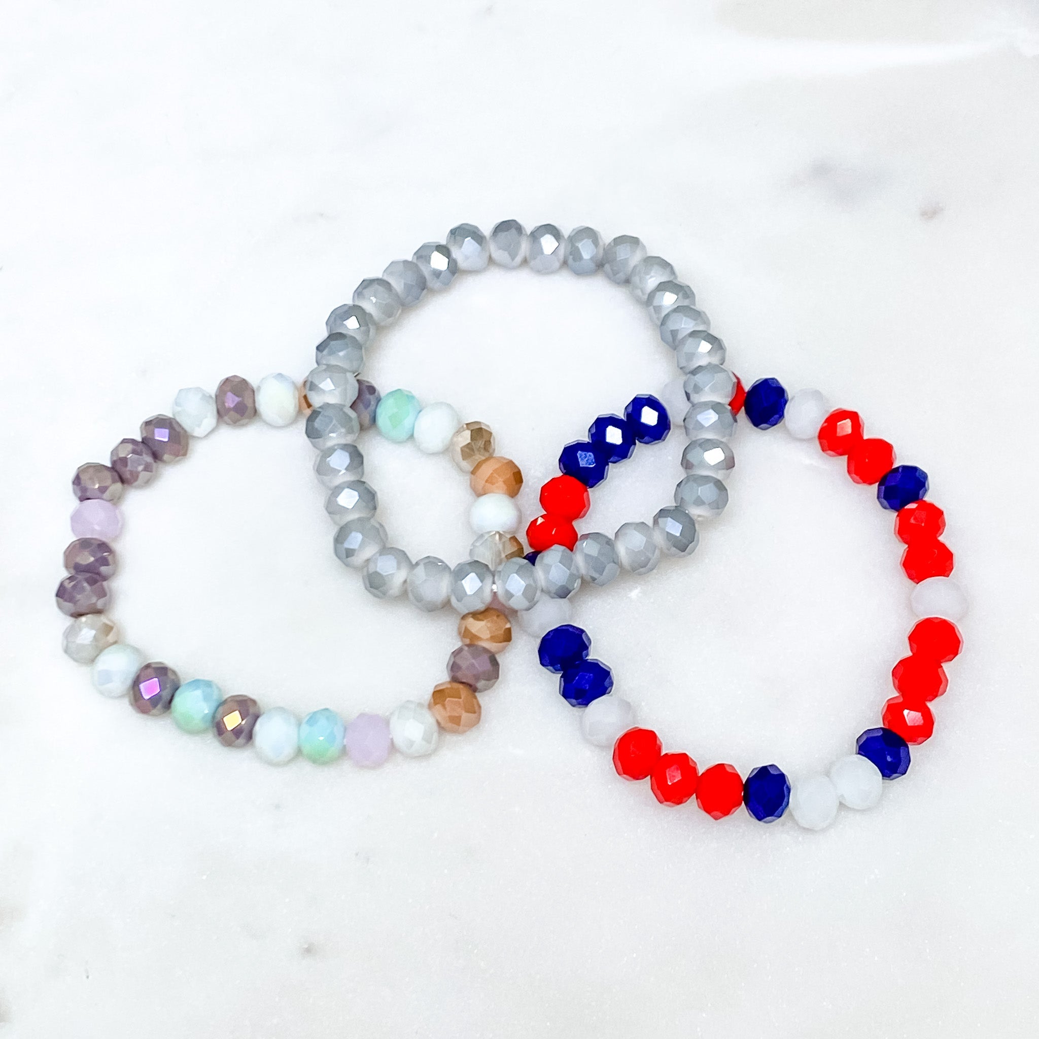 These stretch beaded bracelets are a perfect way to add a stylish detail to your favorite outfits this season! We love the multi color beads they pair so beautifully together. You can easily throw this on with any outfit for a touch of elegance.
