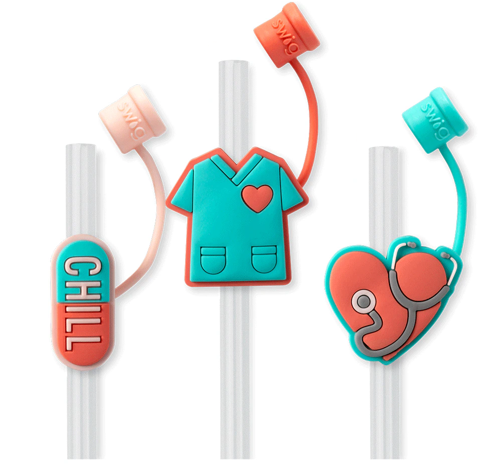 Sip in style while keeping your drinks clean and safe with our adorable Straw Topper Sets! This set features three reusable straws with whimsical silicone charms featuring protective caps. Keep them all for yourself or share them with a friend!