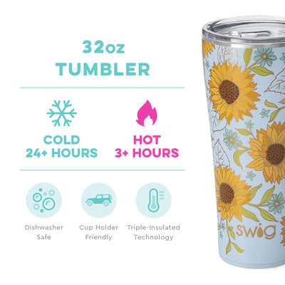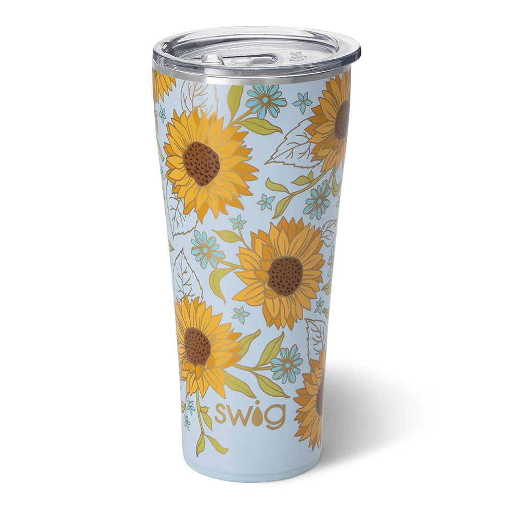 32OZ- Bigger really is better! 💯 Wild and warm, soak in your sunshine with this field of sunflowers garnished in dazzling gold.