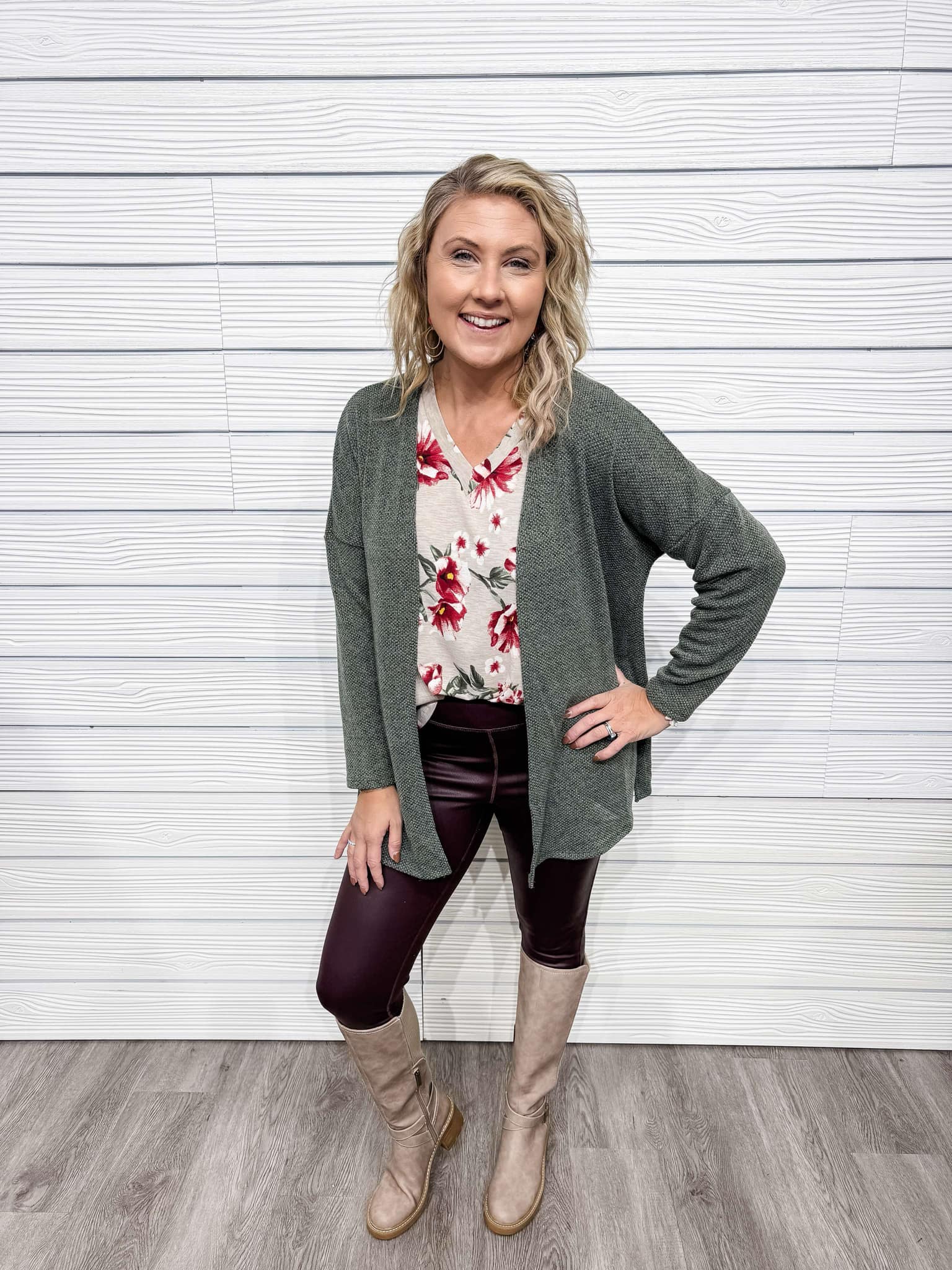 Step up your style with this woven waffle knit cardigan. Perfect for any cozy moment, you'll be sure to keep on moving onto cuteness and comfort! This cardigan features a soft, woven waffle knit perfect for layering up any outfit.