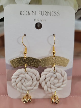 Gold hammered design with clay rope look and gold round beads to look like weightsl