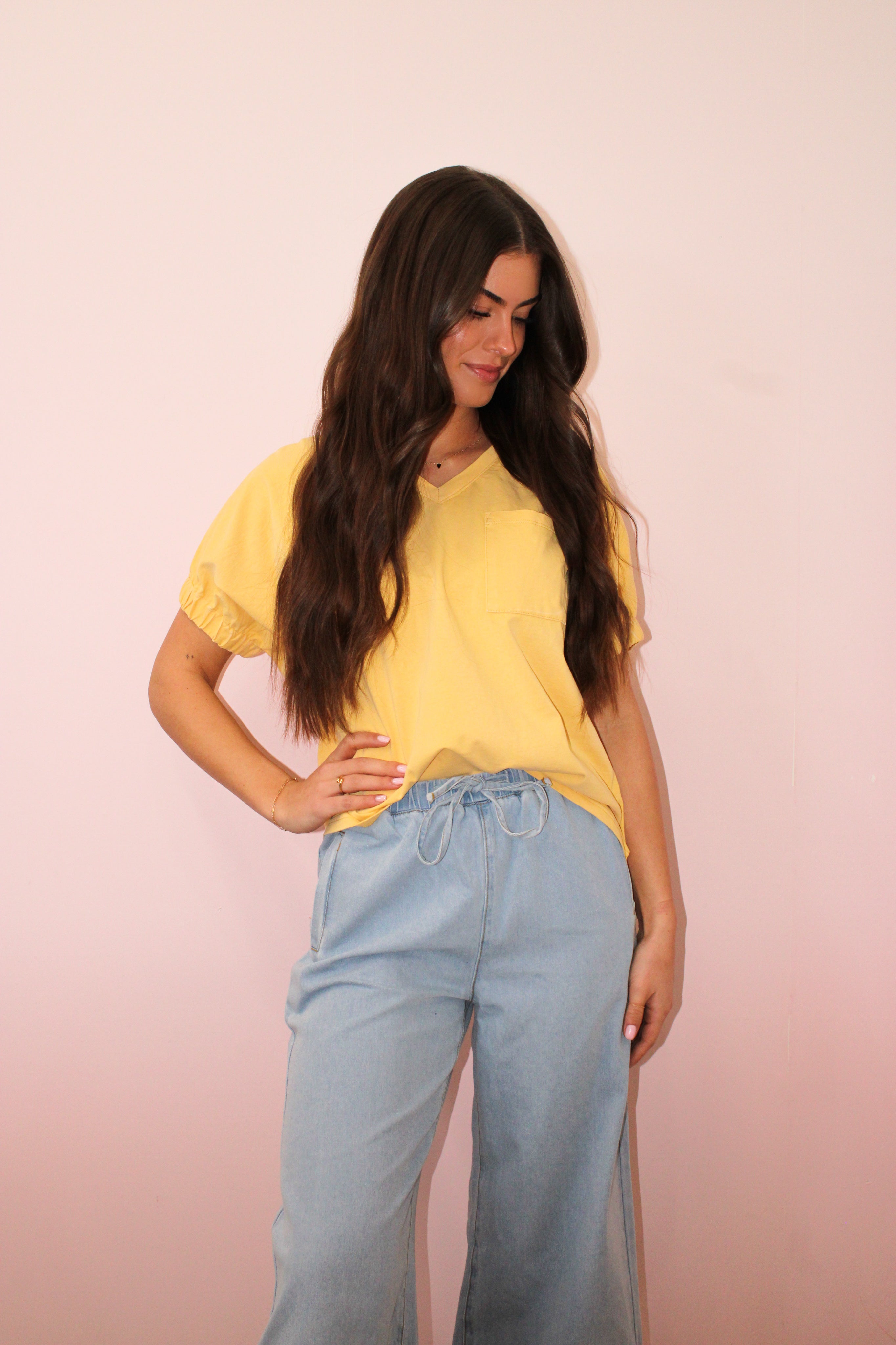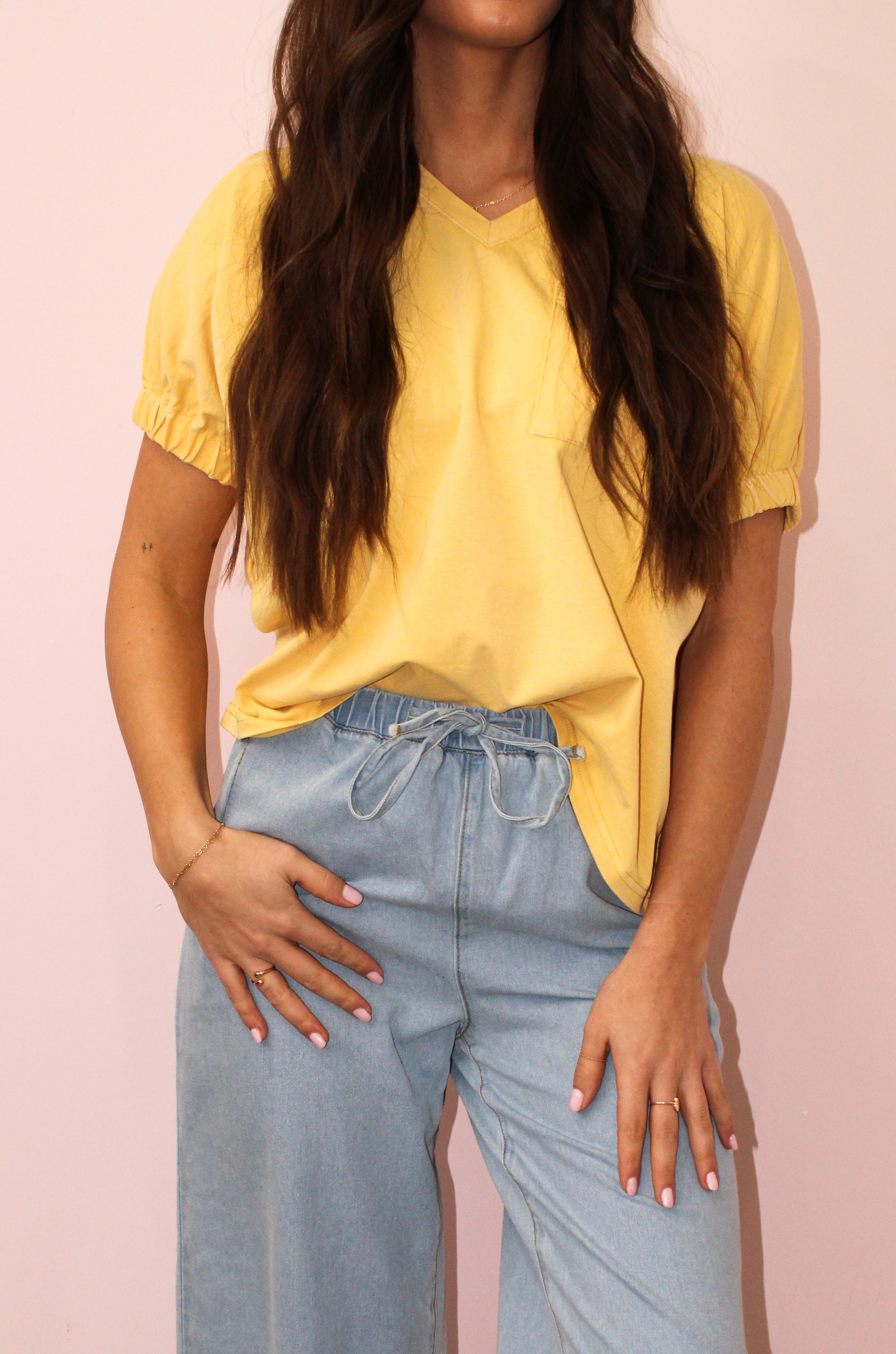 Experience ultimate comfort and style with the You'll Like That Top. Its elastic sleeves and V-neckline provide a flattering fit, while the left chest pocket adds a touch of practicality. Plus, the super bright and fun color will make you stand out in the best way! Get ready to love this top!