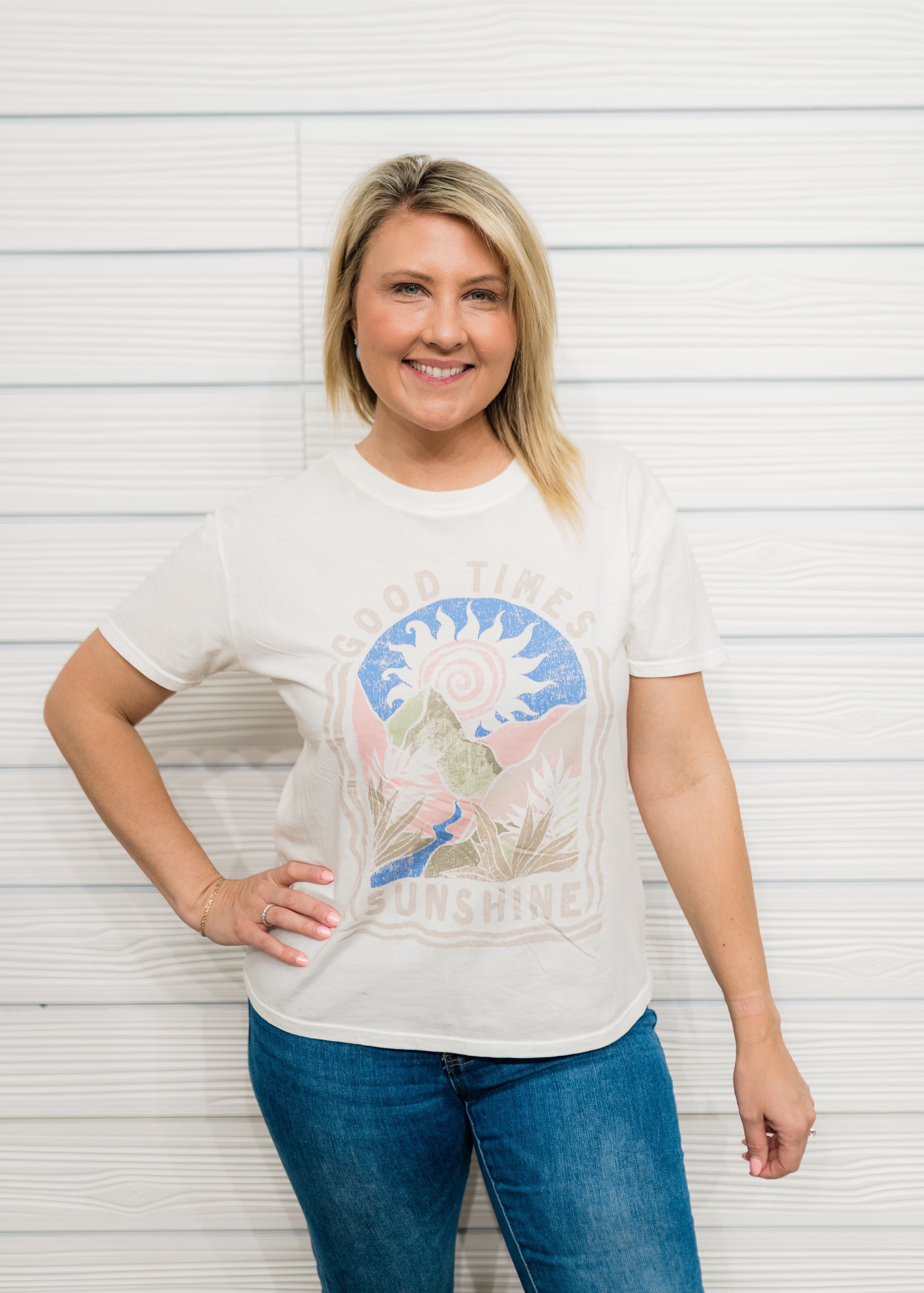Get ready for warmer days with the Z Supply Sunshine Boyfriend Short Sleeve Tee. This comfortable and breathable tee features a rounded neckline and short sleeves, making it perfect for all-day wear. Its graphic detailing on the front adds a touch of style to your casual wardrobe. Stay cool and stylish in this must-have tee.